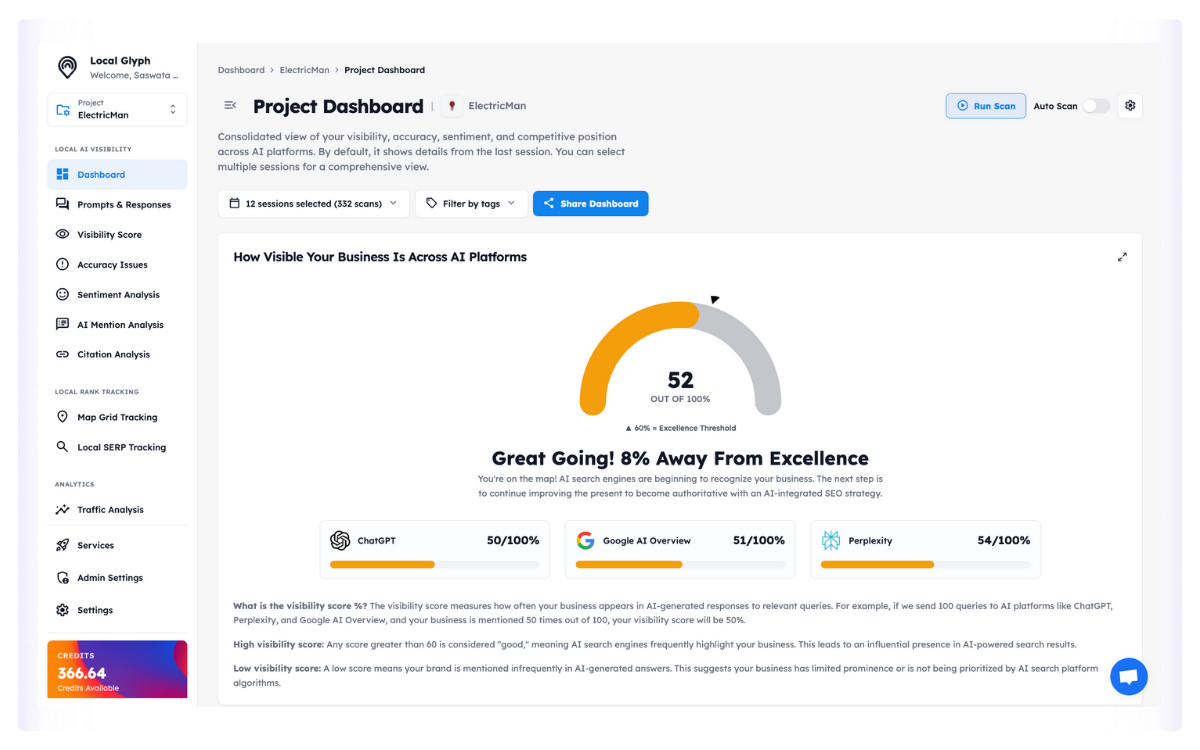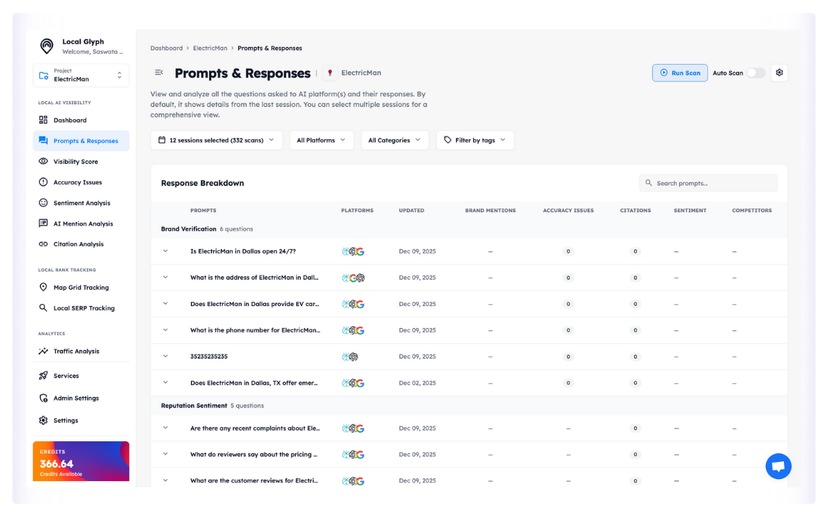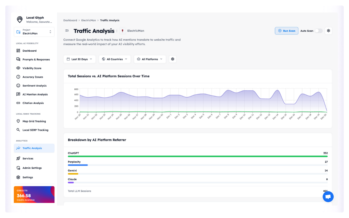 - ~116 full AI platform scans (ChatGPT, Google AI, Perplexity)