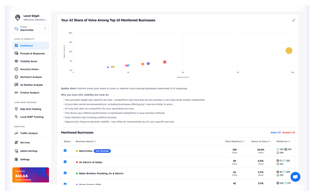 "I used Local Glyph today with a prospective client, the share-of-voice chart is powerful. Clients always ask how things are changing in ChatGPT, and this makes it crystal clear."