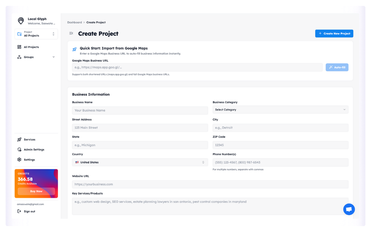 Connect Google Analytics to measure the impact of AI visibility, local rankings, and map performance on traffic.